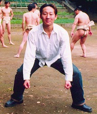 | 評 | 関西人の特性を十二分に生かしたボケとツッコミのメリハリのきいた相撲と、ぎっくり腰大帝を容赦無く腰から土俵に投げつけるファイティングスピリットは名実ともに香港&上海倶楽部のホープにふさわしい。江戸っ子である東の人間を憎み、西を愛す。殊にぎっくり腰大帝とは因縁の中であり、土俵を降りても両人の抗争は終結しない。99年の香上大会で親方を幼児爺を撃破。その勢いは留まるところをしらない。 現在No,1の座をめぐり大帝と抗争中であるが、紫禁城を攻城すべく進撃中との情報もある。<北京発・ロイター・共同> 但し、フーゾク関連の黒い噂はむごい!!どうやら弱点は"下半身"にありそうである。 |